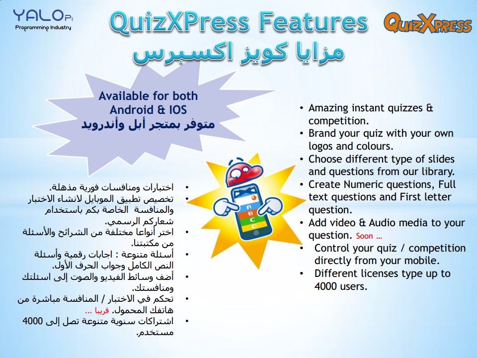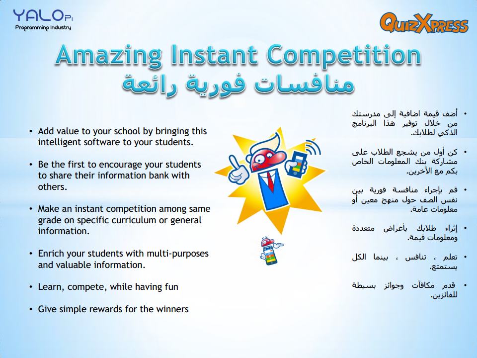 Targetted audiences : HyperMarkets, Schools, Training Centers, Universities & Colleges, Companies-Events, Big Showrooms, Educational events and Personal Events.